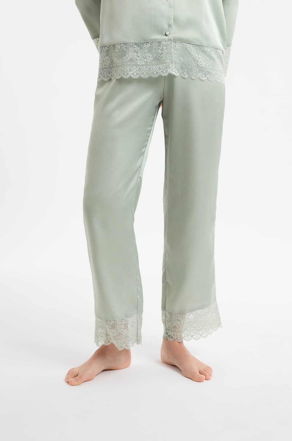 Pantalon de pyjama satiné avec détails dentelle;${refinementColor}